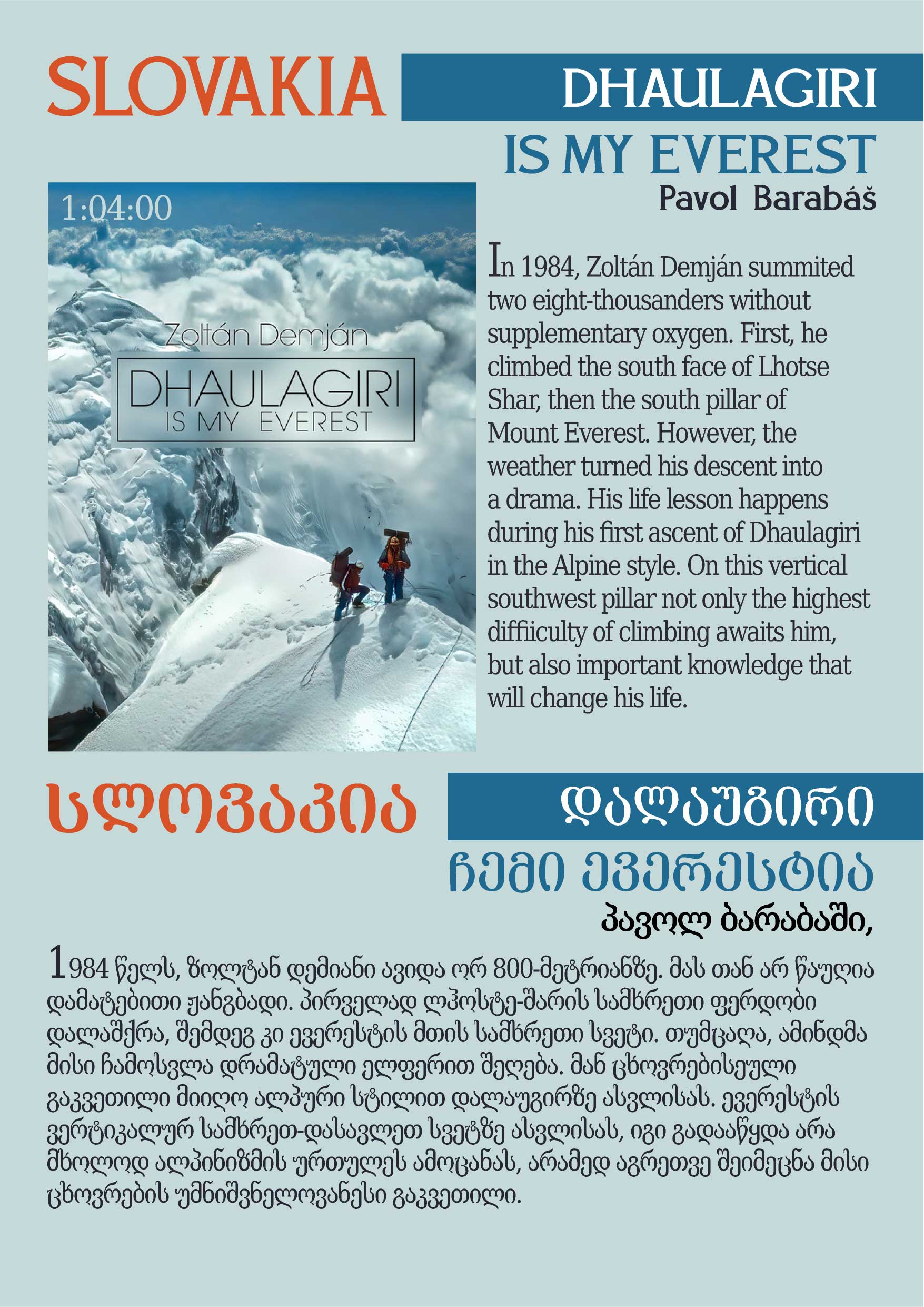 - Dhaulagiri is my Everest 01:04:00 (Slovakia)